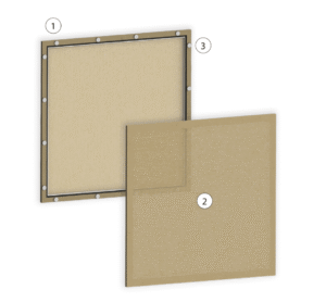 - لوح قماشي ثابت غير قابل للتشغيل، يتكوّن من القماش المختار والمثبت على إطار من الألمنيوم.