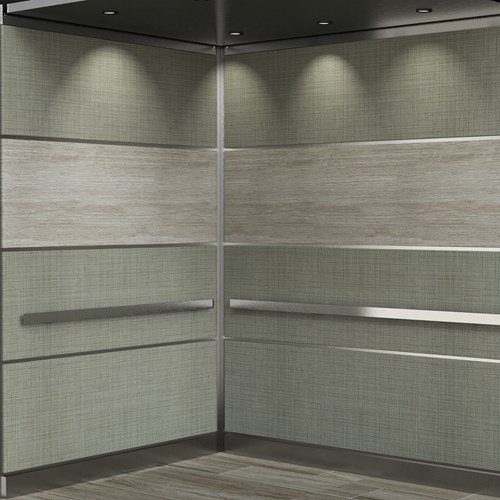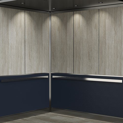 يتميّز تصميم Mercury™ بـ 12 لوحة أفقية بعروض متدرجة، كما هو موضّح هنا مع ألواح سفلية من الستانلس ستيل المحبّب 5WL، وتشطيبات Ricochet® بألوان Converge Silver Fog و Storm Cloud، ليقدّم مظهرًا عصريًا يجمع بين القوة البصرية والتفاصيل الراقية داخل المصعد. للاطلاع على خيارات التخصيص المتاحة واختيار التشطيبات والألوان التي تناسب مشروعك، يُرجى التواصل معنا […]